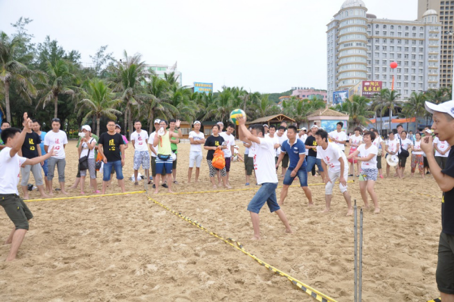 我們在黃金海岸舉行了沙灘排球、拔河、兩人雙足等衆多(duō)有(yǒu)利于團建的沙灘娛樂活動。看看我們的沙灘排球誰更厲害,首先姿勢要擺對,聽我口哨準備發球啦!啦啦隊們為(wèi)我們的精(jīng)彩比賽喝(hē)彩!